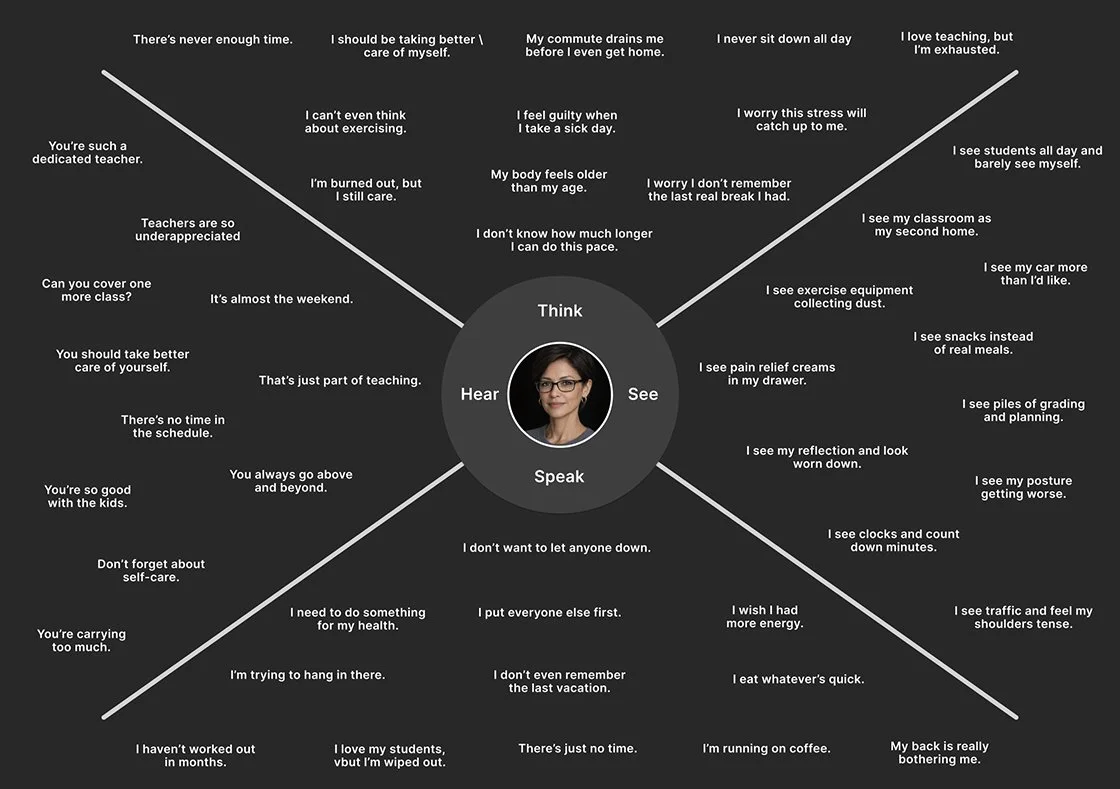 These empathy maps synthesize user needs, thoughts, feelings, and behaviors to build shared understanding and foster empathy across the team. They clarified priorities, revealed innovation opportunities, and directly informed design decisions, shaping the process and guiding solution development toward more resonant, user-centered outcomes.