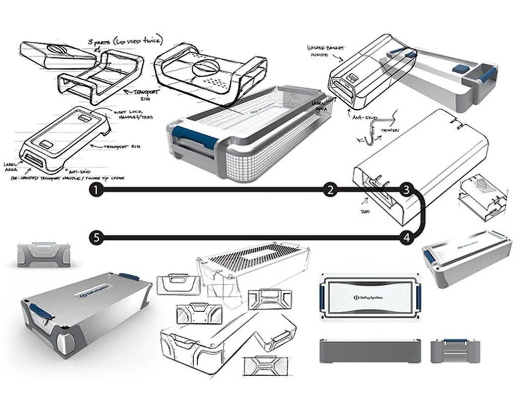 This project, targeted at modernizing an expensive surgical tool system, followed a methodological approach: understanding the issue through research, ideating through rapid visualization, exploring solutions via prototyping, gathering user feedback through testing, and iteratively refining through cycles.